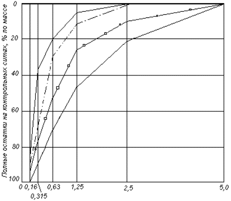 3.10. Для бетонов гидротехнических сооружений допускается применять пески с модулем крупности от 1,5 до 3,5 (полные остатки на сите размером 2,5 мм от 0 до 30 %, на сите 1,5 мм - от 5 до 55 %, на сите 0,63 мм - от 20 до 75 %, на сите 0,315 мм - от 40 до 90 % и на сите 0,14 мм - от 85 до 100 %). При этом мелкие пески с модулем крупности, равным или менее 2,0, должны использоваться при обязательном применении поверхностно-активных добавок.