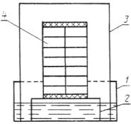 3.3.1. Образцы укладывают в вакуумный эксикатор на подставку и заливают водой так, чтобы ее уровень был выше верха образца не менее чем на 2 см. При применении разъемной емкости образцы укладывают в один ряд по высоте с зазором между ними не менее 2 см.